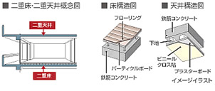 生活騒音を軽減させるため、コンクリート面と室内の間に空気層を設けた二重床・二重天井を採用。遮音性に配慮しました。