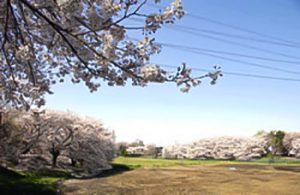 公園を囲むように配されたソメイヨシノをはじめとする159本もの桜並木を有するお花見の名所です。開花時期には提灯が設置され、夜桜を楽しむこともできます。